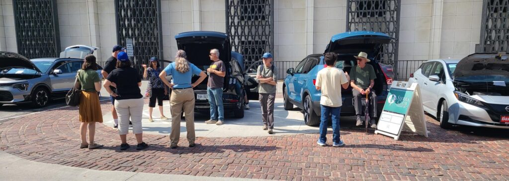The vehicle display was in the parking lot on the southwest side of the park, and our booth providing EV information was adjacent to the north side of the vehicle display.